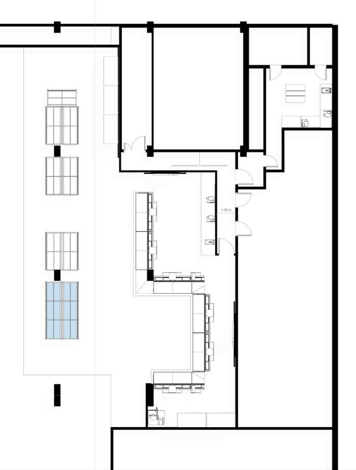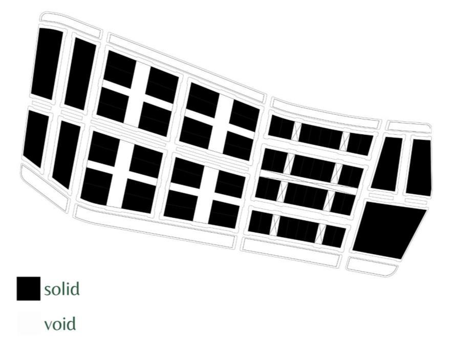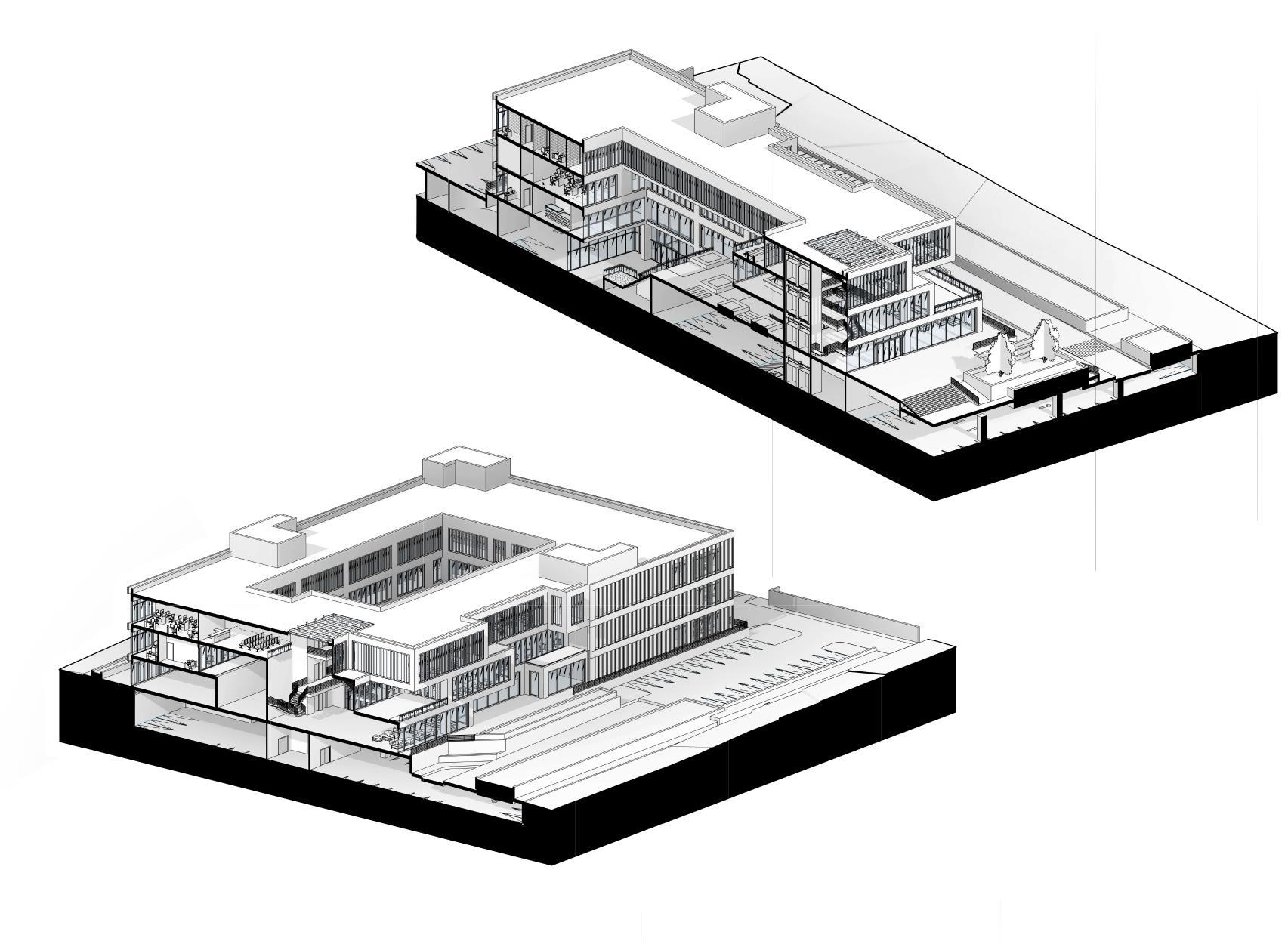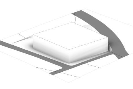 Dividing the mass to three levels to separate the offices on the top two levels and the public space on the ground floor