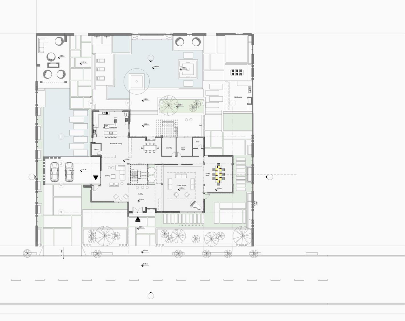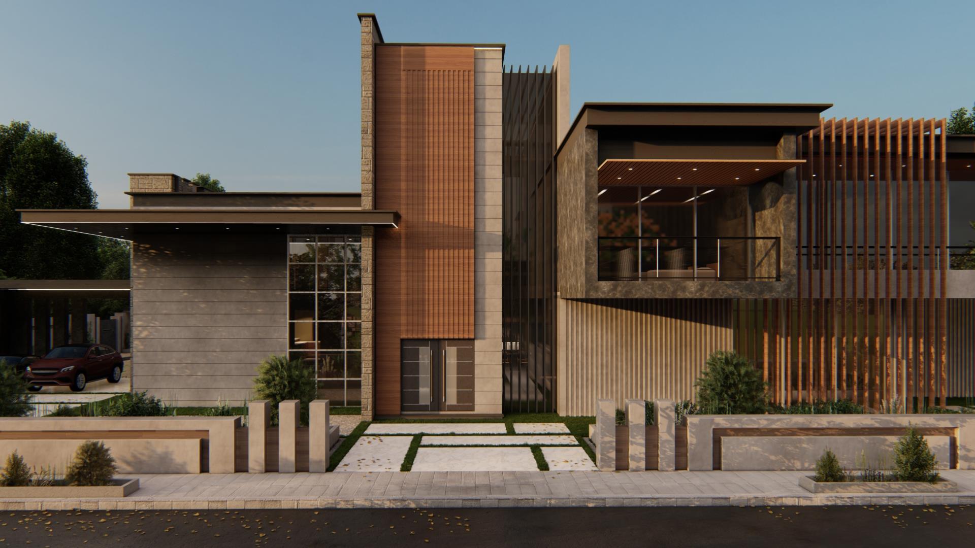 Is a freelance villa project that me and my partner (Ammar AlQaddoumi) have started working on for two months after graduation. The client requested a unique looking villa with four bedrooms that were oriented towards the views of the city (AsSalt, Jordan), and a landscape design that included a pool, multiple sitting areas and a BBQ area, and the following graphics are proposed 3D renders & plans of the project.