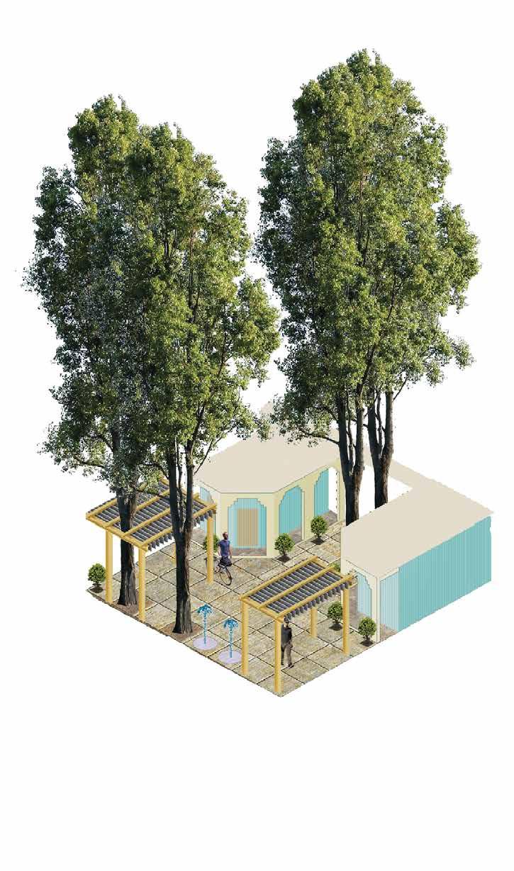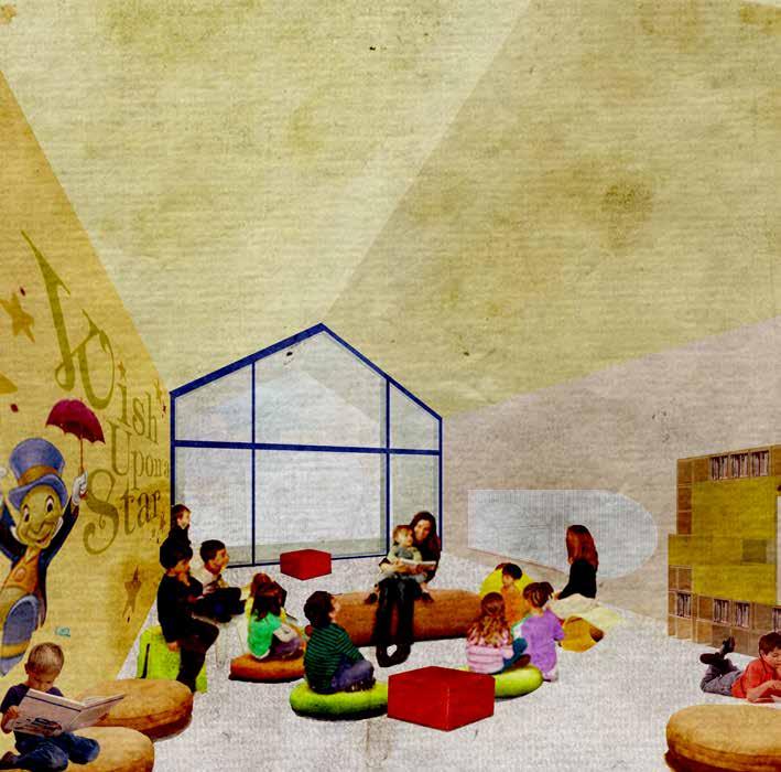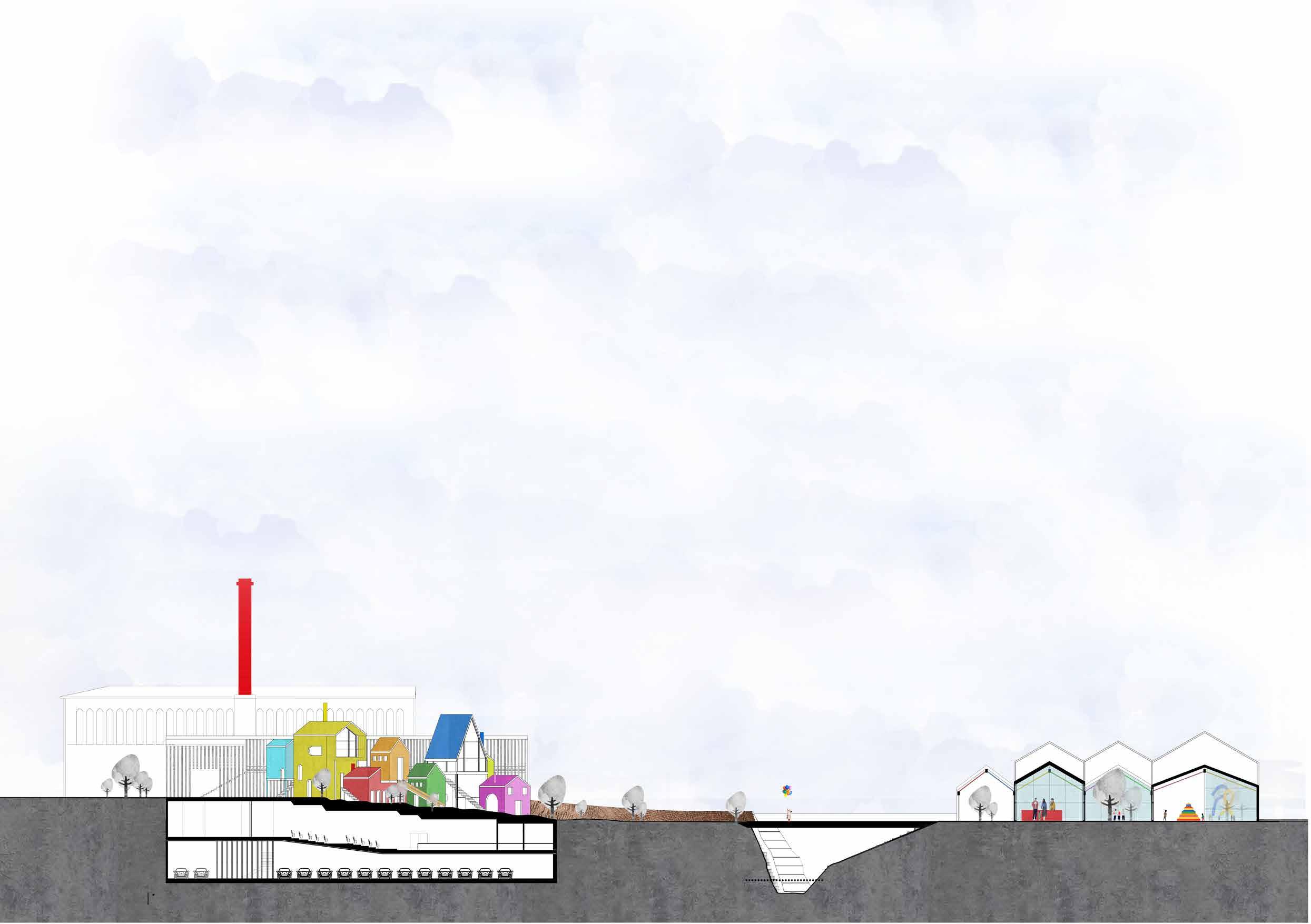 The exis�ng Pinocchio's park is not in direct touch with the city of Collodi. Both look more isolated than connected. The paper factory has the main element that has all the main characteris�cs of its iden�ty, removing the unnecessary added elements could be more helpful than saving them. This primary volume is the key in propor�ons of design. The Church of Collodi is one of the other significant building in the surrounding context. This church has a plaza in front as most of the italian churches, but this one is a bit forgo�en and became a parking place for the cars. The interven�on connects the church's plaza to the Pinocchio's Park through the library and its landscape. This helps to make the city of Collodi as live as possible, by not isola�ng it.