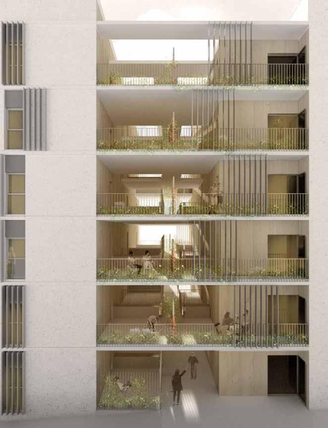 3D modeling and design in Revit; initial render created in V-Ray and retouched with Adobe Photoshop at SVC Architectes, Barcelona. During the recent two years, the same render was later regenerated with Visoid and further refined in Photoshop to produce the right image. At SVC Architectes, Barcelona, Spain