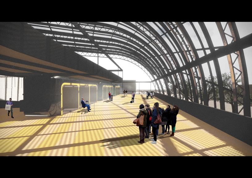 The site acts as a node to which users and pedestrians can orient themselves with, whilst also bridging the gap over the adjacent ring road.