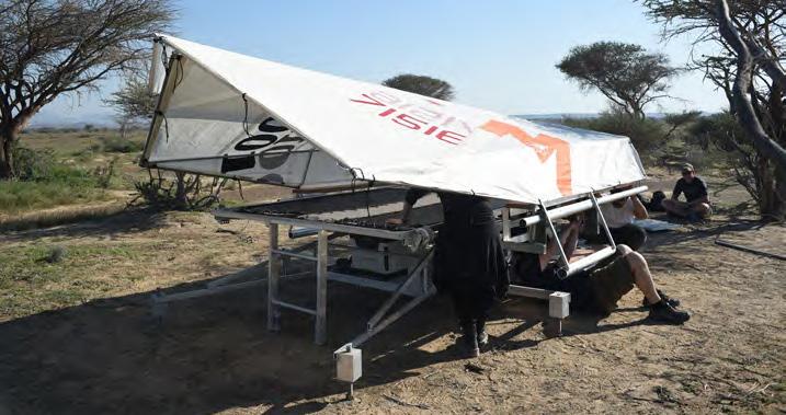 The roof envelope, consisting of repurposed sails, provide ample protection against rain water and harsh sand storms.