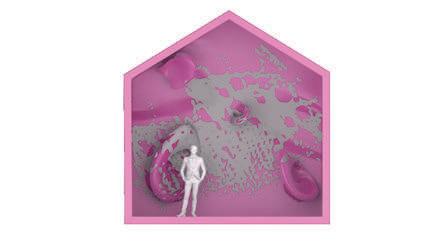 Design Process - In "The Home," encompassing the Kitchen, Studio, Living Area, and Bedroom, the goal is to challenge conventional norms regarding these spaces by incorporating non-traditional perspectives. This Space o ers an alternative vision of home, curated for those interested in an unconventional interpretation. It consists of interconnected rooms, each maintaining its core purpose but diverging from traditional aesthetics. Through the manipulation of textures and colors.