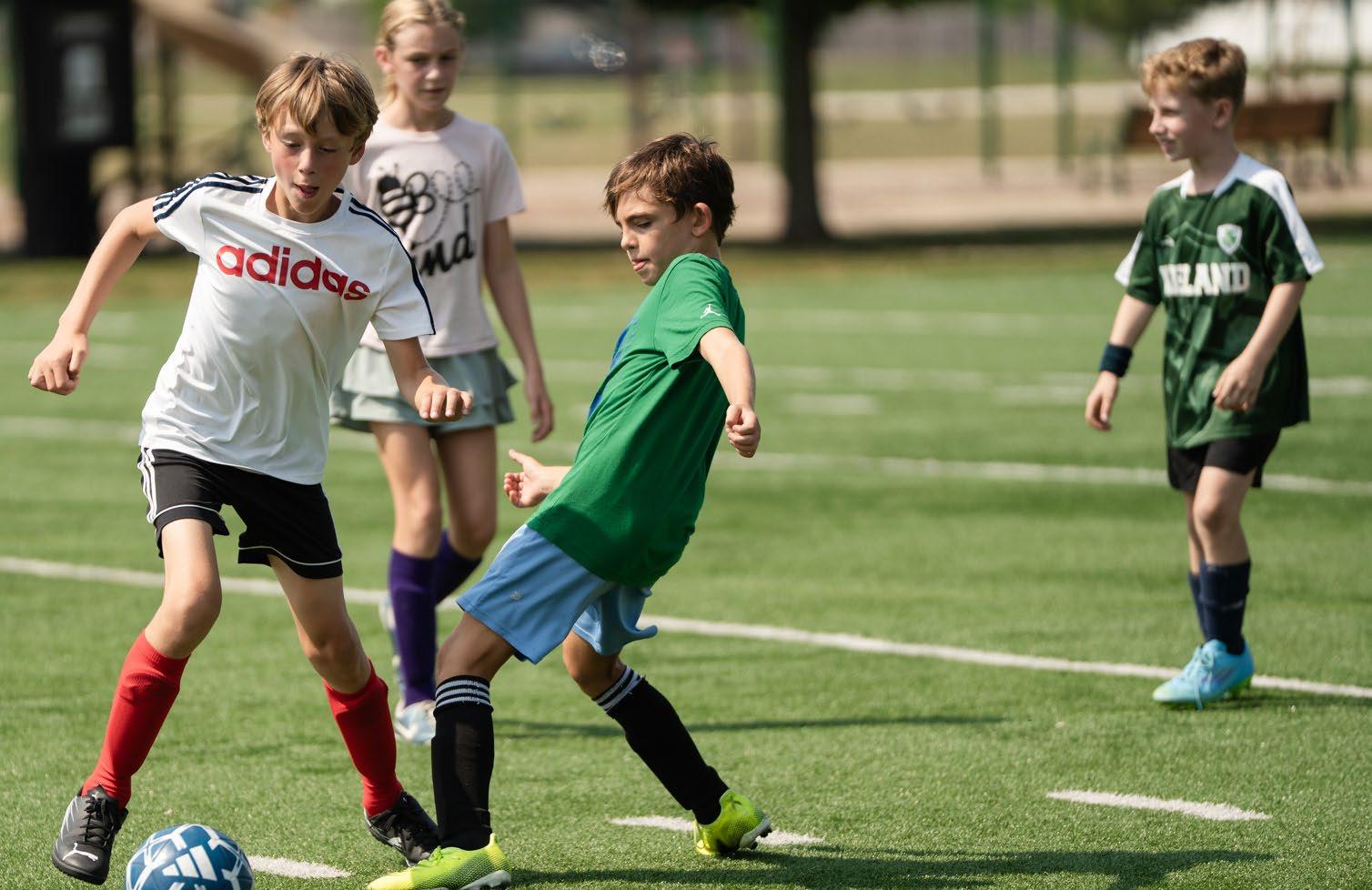 Arlington Aces Soccer Coaches create a safe, fun-filled learning environment while developing and enhancing campers’ soccer skills. Campers are placed into groups based on their skill level and age. Daily sessions involve counselor demonstrations, specific skills training and games. (LH)