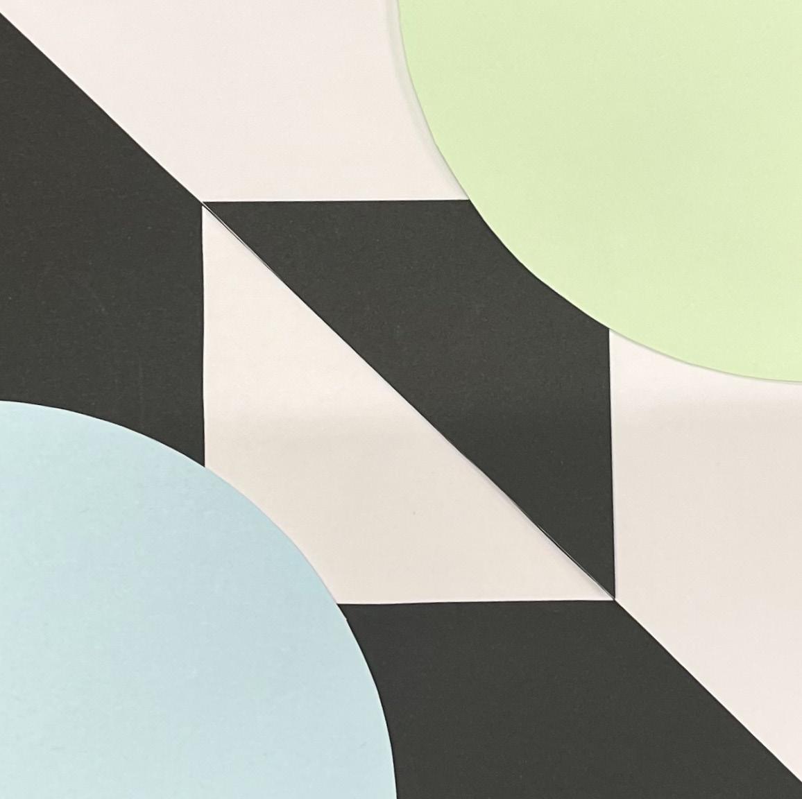 Questo moodboard rappresenta uno spazio architettonico immersivo, dominato da tonalità di verde che evocano un legame con la natura. Il pavimento presenta un pattern geometrico dinamico, che aggiunge profondità e movimento visivo. Le pareti sfumate creano un effetto avvolgente e morbido, mentre l’elemento artistico centrale – una scultura filiforme – introduce un contrasto materico e concettuale. Il divano dalle forme organiche e la pianta enfatizzano un’atmosfera rilassante, bilanciando l’astrazione dello sfondo pittorico con elementi concreti e tattili.