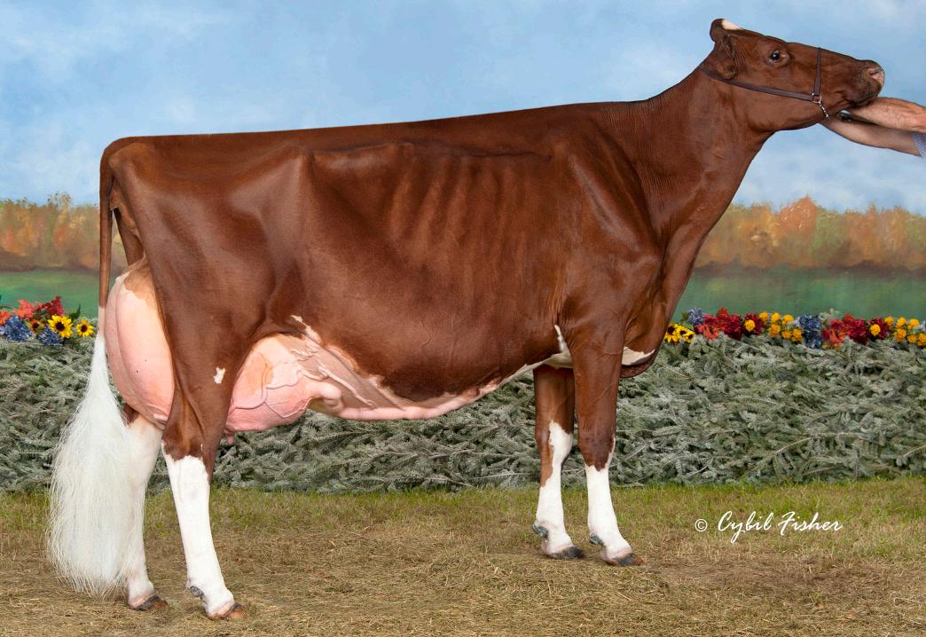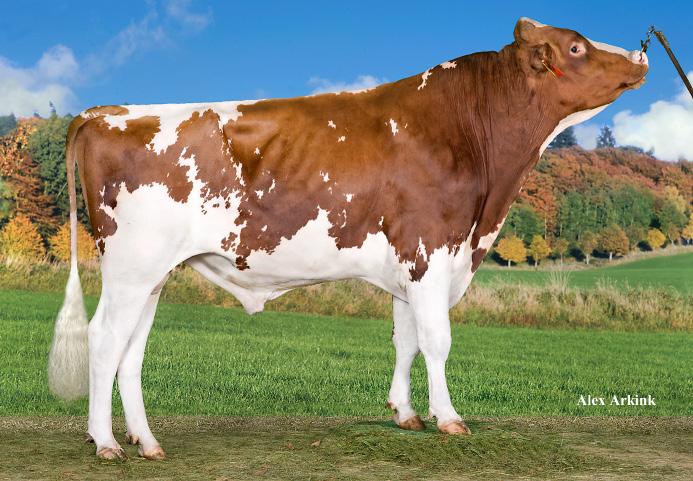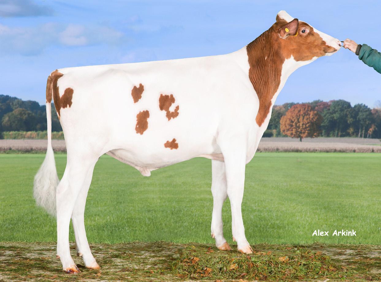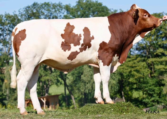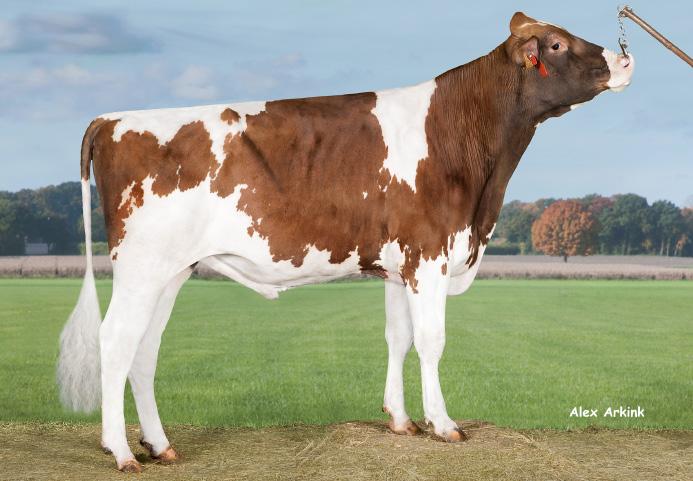CAPS DG APPLE PIE RED broke a new record by being the #3 Red and White bull on the Swiss index with +1558 ISET. Besides this, APPLE PIE is the #1 Red and White bull in the Netherlands for his outstanding health traits and great udders (+117)! APPLE PIE is also available sexed!