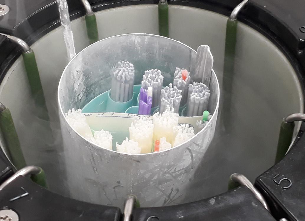 A detailed semen inventory should be easily accessible so straws can be located and removed from the tank quickly to avoid exposure to ambient temperature. When removing a straw from a liquid nitrogen tank, it is imperative the technician keeps the canister, cane and unused semen straws as low as possible in the neck of the tank. A best management practice is to keep all unused straws below the frost-line in the neck of the tank.