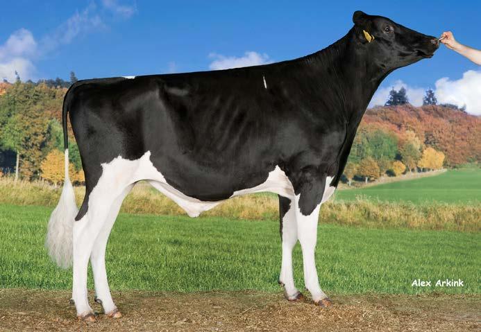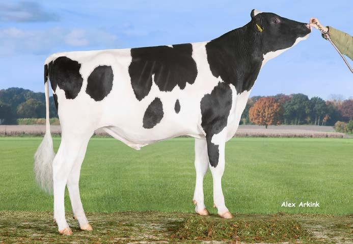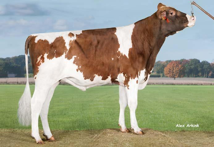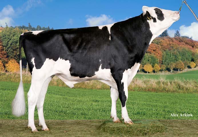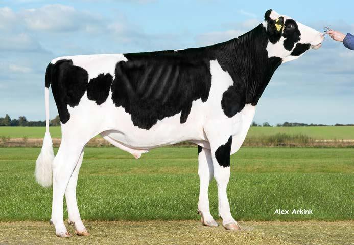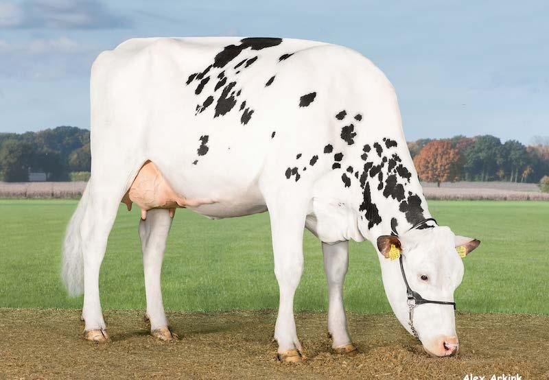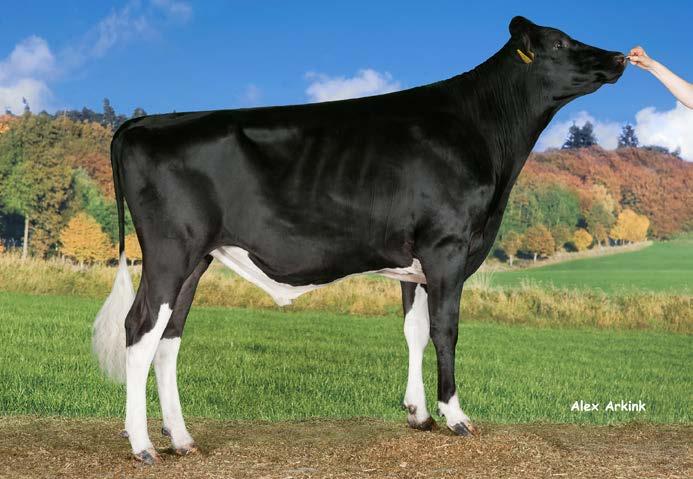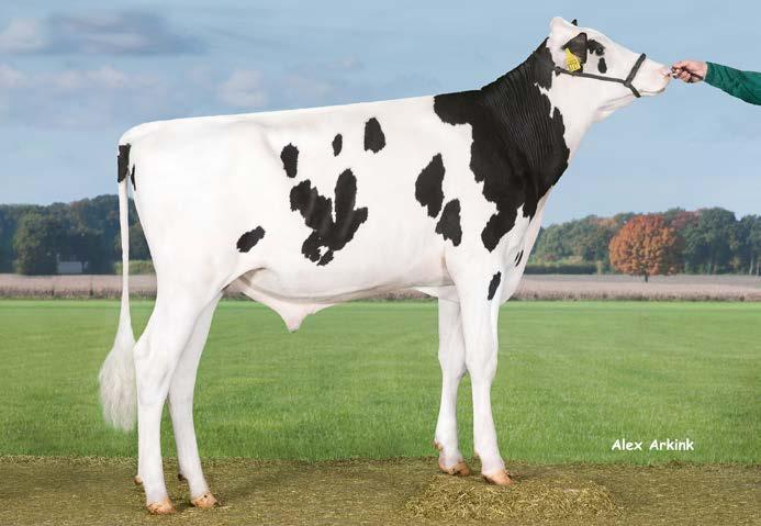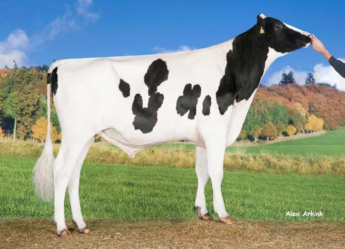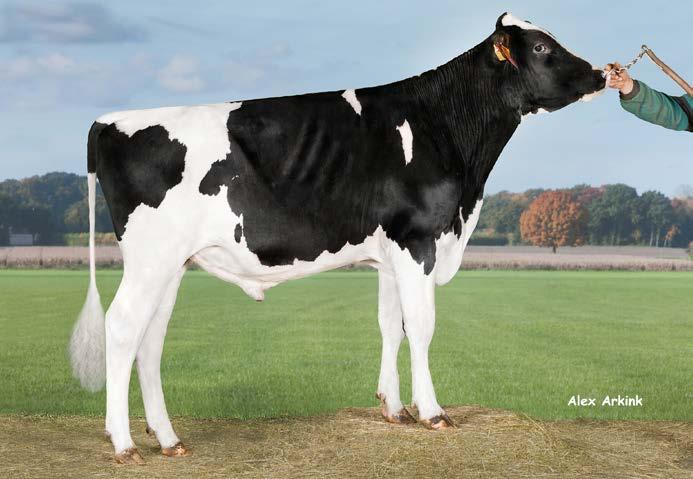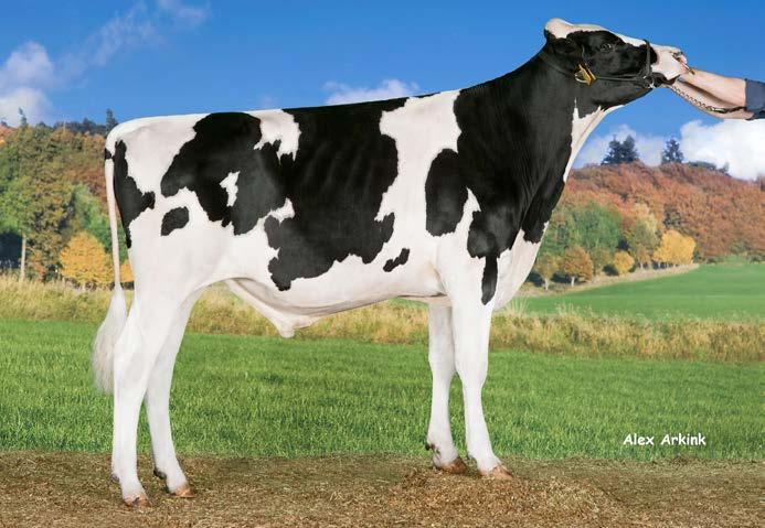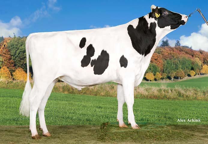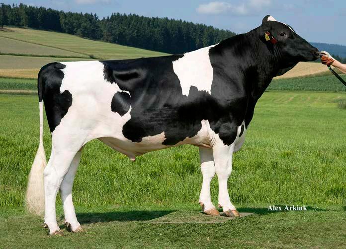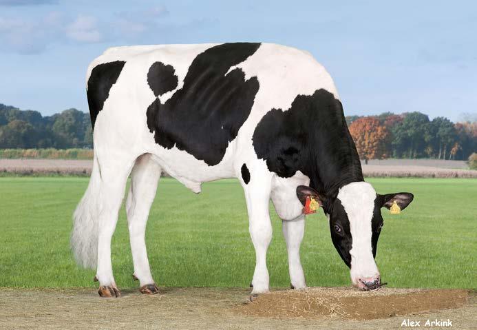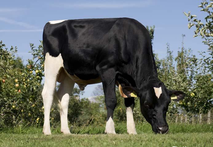 When we mention calving ease specialists, we cannot go around Hul-stein CONQUEROR (4,8%). With his outcross pedigree (s. Armour) and great health traits, he can be used for many matings. Caps DG APPLE PIE RED (of the Apple Red EX-96 family) also represents great health traits and combines this easily with high components and great type and udders. APPLE PIE RED is sexed available. You all heard of Welcome TUCKER (s. Montross), the ultimate production specialist (+2669).TUCKER combines his high genetic level with low somatic cells, positive DPR and +2.60 PTAT. With this figures, TUCKER, DG Albero ELDORADO and Koning TARZAN are leading the list.