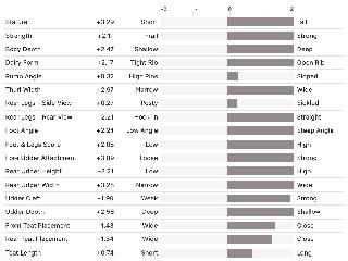 PTAT is an estimate of the genetic superiority for conformation that a bull will transmit to its offspring. This is directly correlated with the final score of the bull’s daughters, not the linear traits.