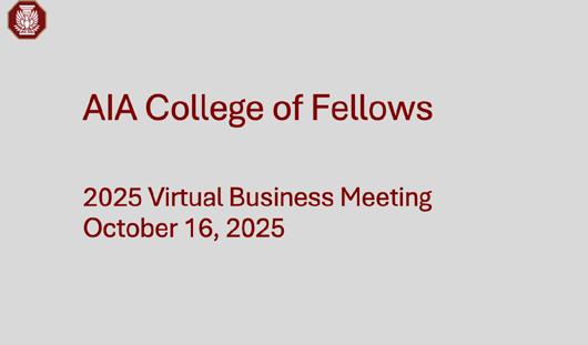 There was important activity happening behind the scenes in 2025 as the Executive Committee dug into some necessary business. Vice-Chancellor Jackson led the serious effort to update our governing and operational documents. The Bylaws of the College of Fellows Fund were revised and approved by the ExCom. The Standard Operating Procedures of the College have also been revised and approved. Revisions to the Bylaws of the College of Fellows have been approved by the COF ExCom and forwarded to the AIA Board of Directors for approval.