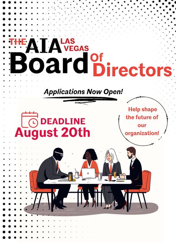 Our triple digit days of summer are now upon us; I hope everyone has been able to enjoy some cool activities indoors or take the opportunity to travel. For the past month of July several of our AIA Las Vegas committees have taken a break from meetings but this month they are picking back up again. I would like to encourage participation in our committees as well as our Board of Directors. You can find more information on our website about both