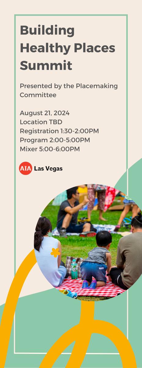 I’m looking forward to another month of interesting events in July. The Placemaking Committee is bringing you another opportunity on July 18th; “Nevada State University: Past, Present, & Future” Our own Kristina White will moderate a panel discussion regarding the University’s master plan and what the future holds We are also looking forward to the Placemaking Summit, “Building Healthy Places” on August 21, 2004 Hip Hop Architecture Camp is scheduled for July 29th – August 2 This camp is design to help 6th –12th grade students explore architecture, design and music. There’s plenty of room for additional volunteers and sponsors. If you are interested, please contact the AIA LV office.