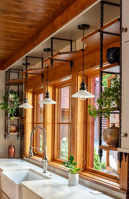 and joists help create a richly textured space. These elements not only provide visual warmth, but lend an understanding of the home’s structural logic.
