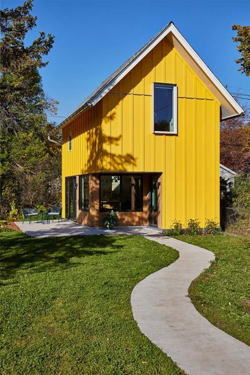 Reflecting the homeowners’ commitment to sustainability, the home features energy-efficient products and building techniques including cutting-edge assembles with an insulated concrete form (ICF) foundation, structural insulated panels (SIPs), weatherresistant siding made from 70% recycled materials, and FSC-certified thermally modified wood siding, a durable standing seam metal roof, and solar panels.