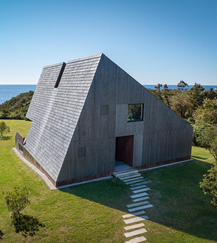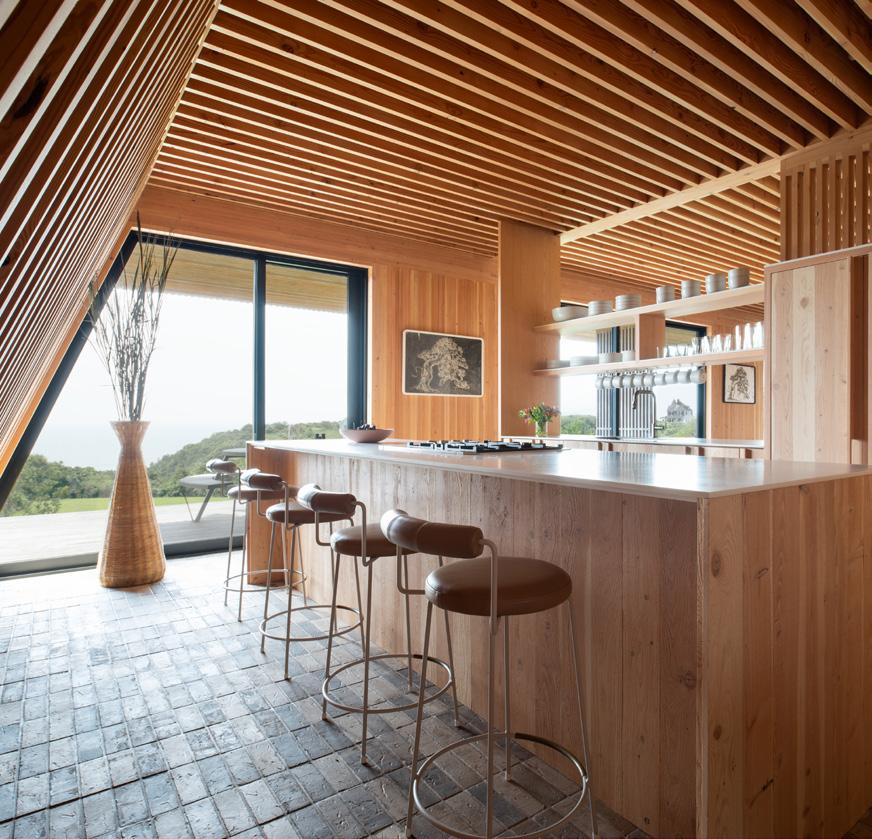 “The challenges of building on this remote site informed a design that is both daring and deeply contextual, with natural materials used in innovative ways to create a bold, sculptural form that feels native to its place.”