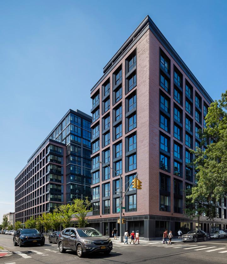 Ruby Square is a transformative 624,000-square-foot mixed-use development in the heart of Jamaica, Queens, just blocks from the major transit hub at Jamaica Station. The project delivers 614 residential units, including 185 affordable units, along with 25,000 square feet of retail space, 5,000 square feet of community space, and over 50,000 square feet of resident amenities. The development provides critical workforce housing while contributing to economic vitality and social cohesion. Amenities include rooftop lounges and terraces, co-working spaces, a stateof-the-art fitness center, an indoor basketball court with viewing area, children’s playroom, pet care facilities, and a turfed dog run. A 24/7 attended lobby and nearly one acre of outdoor space enhance resident wellness and community engagement.