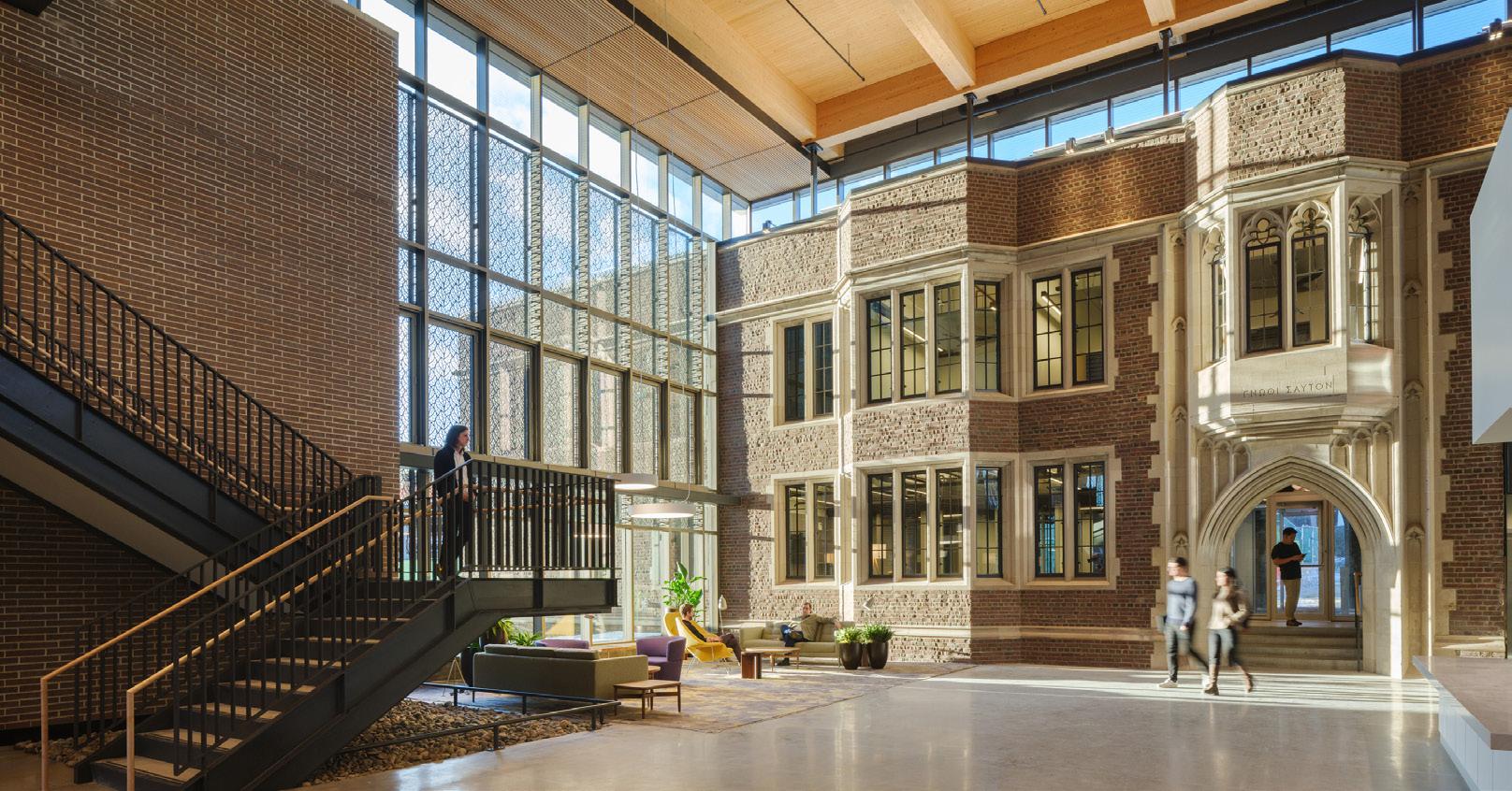 “The quiet but powerful addition creates a wonderful central atrium that emanates a rich dialogue between historic collegiate gothic and modern languages.”