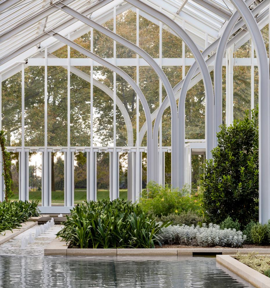 This project is a masterful act of expansion and synthesis that redefines the guest experience. The new 32,000-square-foot glasshouse thoughtfully extends the public garden spaces across the grounds, seamlessly bridging formal gardens with the open meadows and vistas beyond. Within this enriched setting, its greatest strength lies in the integrated design approach: architecture and landscape operating in harmonious dialogue rather than as independent elements.