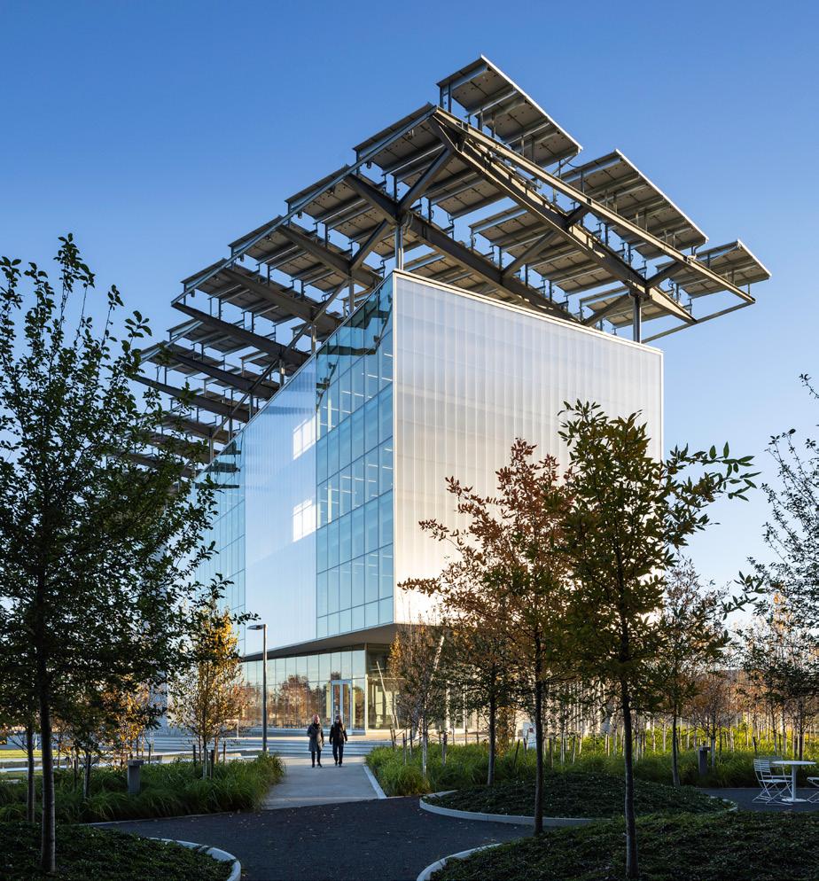 Interior spaces are designed for health and comfort, optimizing air quality, daylighting, and access to outdoor areas. Precast concrete panels with varied textures create a dynamic exterior surface, while high-performance systems support net-zero energy and sustainable operation. Collaborative research zones, flexible offices, and demonstration spaces encourage innovation, with infrastructure technology showcased as part of ongoing experimentation.