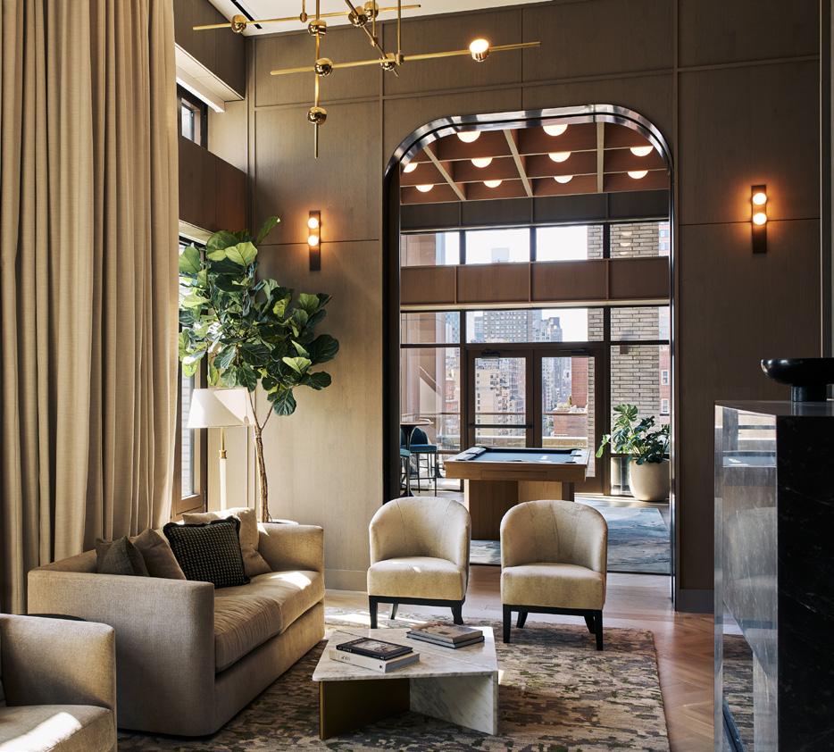 Maison 78 is a 34-story, high-end residential development with approximately 150 rental units. The design encompasses kitchens, baths, and 10,000 square feet of amenities, reinterpreting the elegance of historic Upper East Side townhouses in a contemporary highrise context. Large amenity spaces are subdivided into a series of parlor-like rooms, balancing public and private atmospheres and creating welcoming, flexible environments for residents.