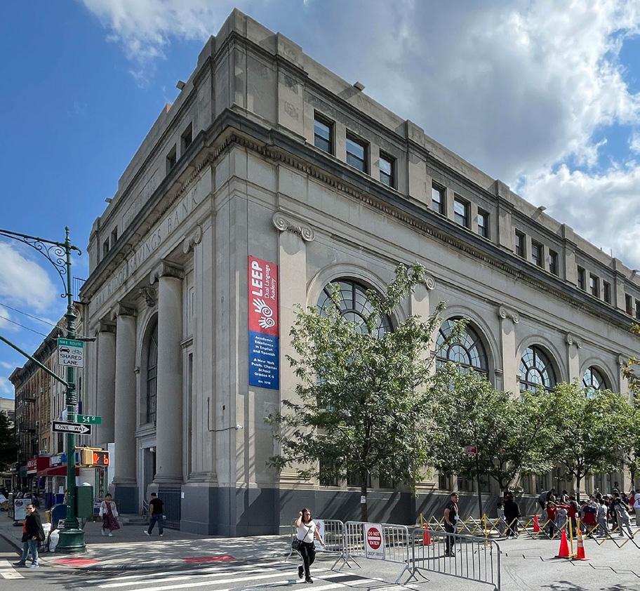 The dialogue between old and new underscores the civic partnership between the school and the historic bank, celebrating both as educational and cultural landmarks. This sensitive adaptive reuse provides LEEP (Leap) with a meaningful connection to its building while preserving an important piece of Sunset Park’s architectural history.