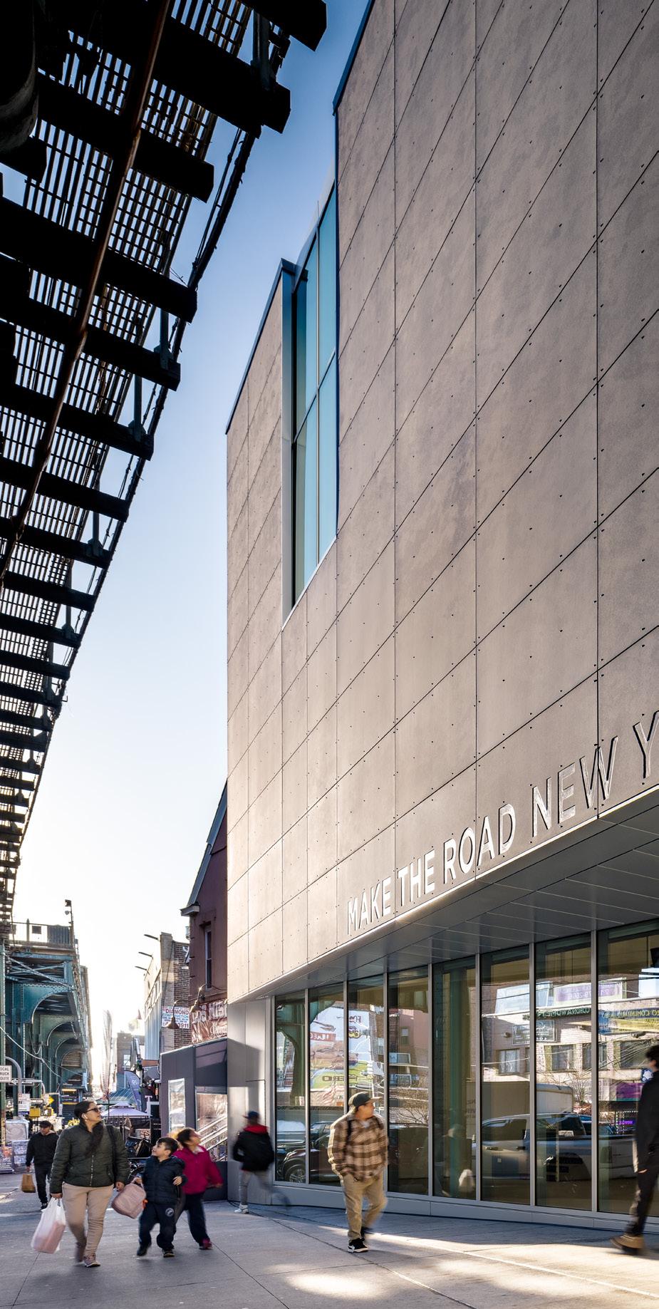 The new community center embodies the philosophy that a community is built through the empowerment of its individuals. By seamlessly connecting the interior to the neighborhood, Make the Road New York Community Center provides a permanent, visible, and accessible hub for learning, advocacy, and civic life, creating a space where people can meet, work, and engage in meaningful change.