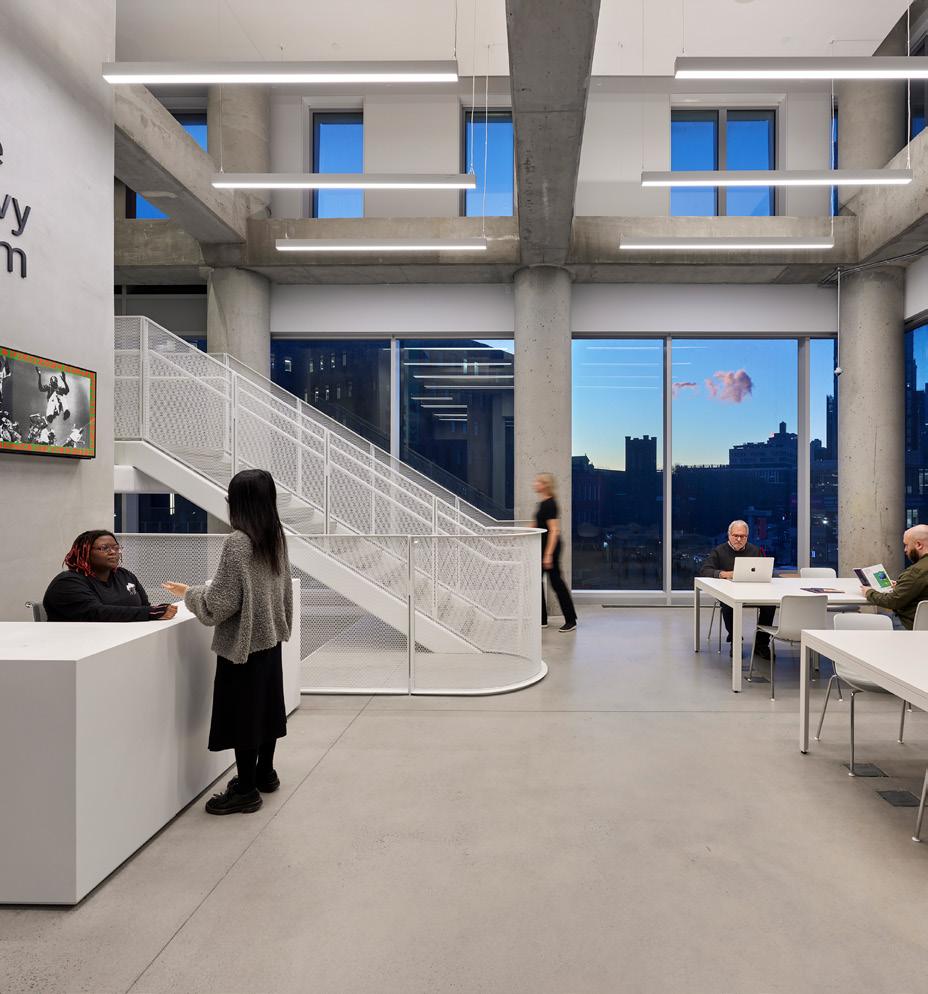 Make the Road New York Community Center serves over 23,000 members and empowers underserved individuals through education, immigration advocacy, health services, and housing justice. The new permanent center embodies the organization’s commitment to community, offering a civic landscape that extends the public streetscape into the building itself. The design establishes an intuitive internal landscape that connects members to resources while promoting interaction, collaboration, and civic engagement.