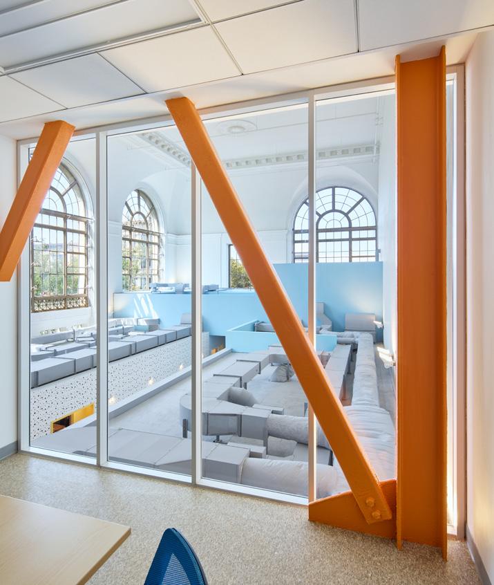 “A transformative act of adaptive reuse, this project’s ingenious use of the building’s six original vaults extending into passive ‘climatic straws’ remakes a dated structure into a vital, human-scaled center for student life.”