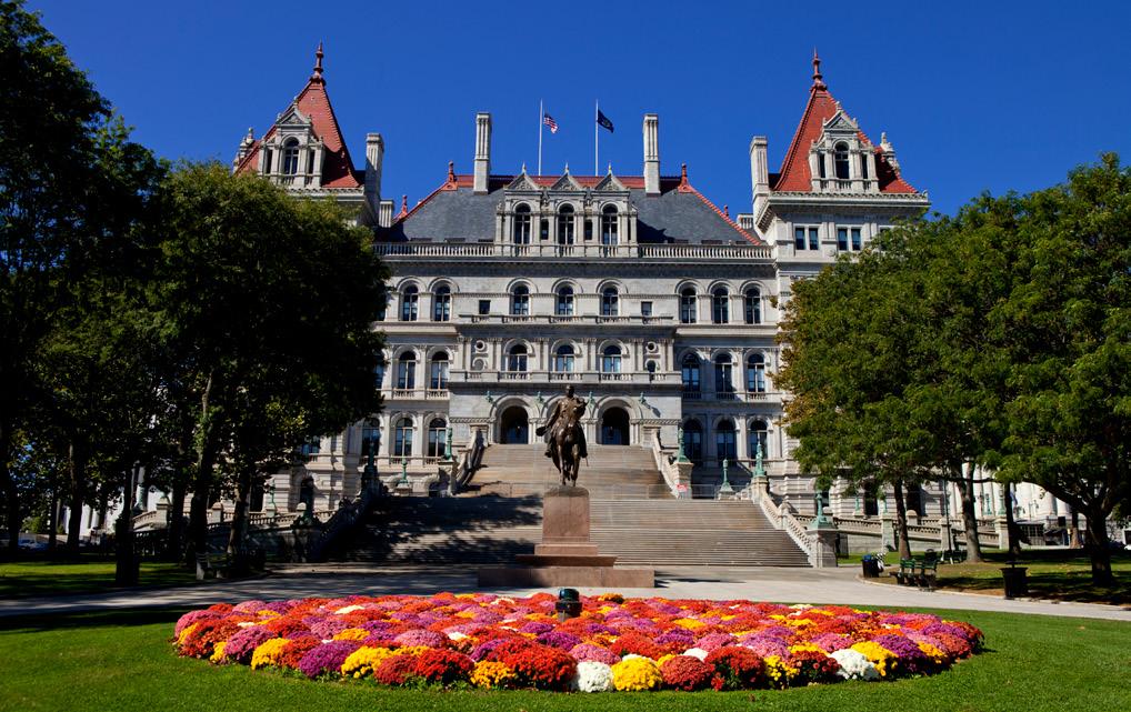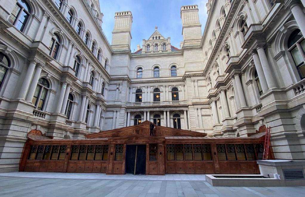 The New York State Capitol, built between 1867 and 1899 is listed on the National Register of Historic Places and features a central openair courtyard space approximately 125 feet by 80 feet in size. The courtyard contains a onestory copper clad central passageway, named the Hawk Street Passage, with an adjoining restaurant space. The remaining courtyard space is the roof of the basement switchgear and mechanical equipment located directly below.