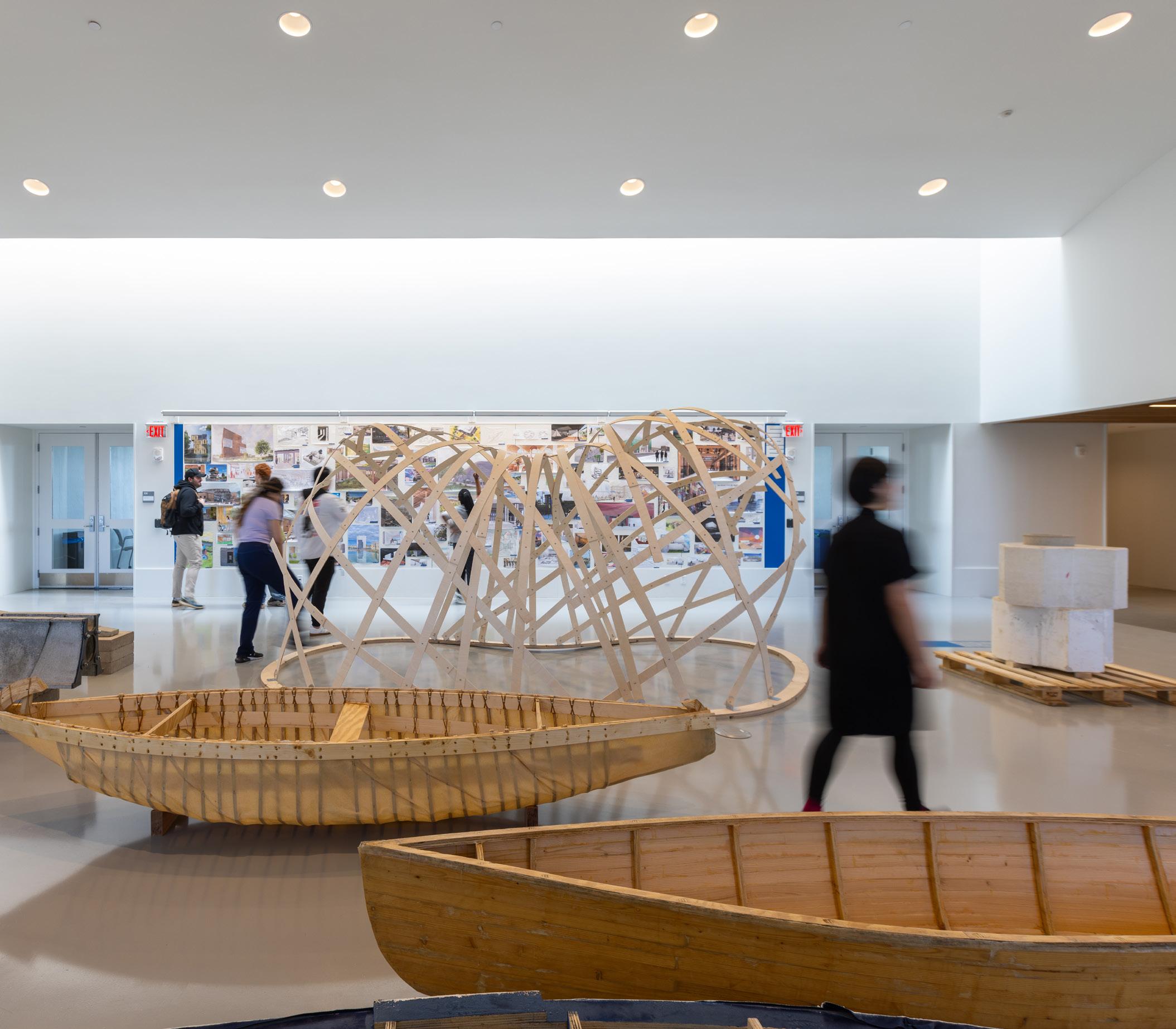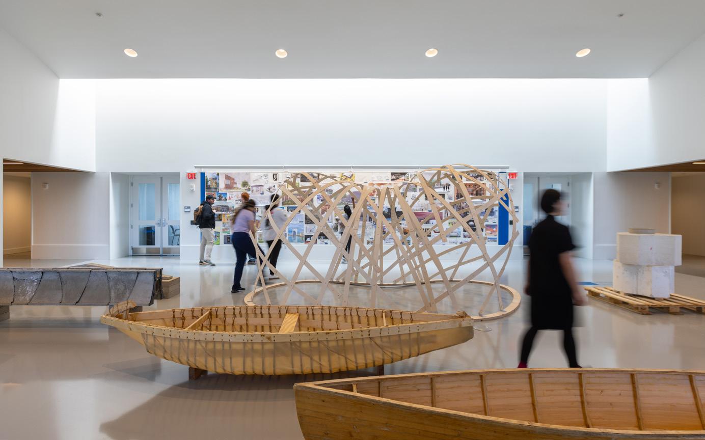 The renovation provides both Landscape Architecture and Environmental Studies identifiable department offices and a presence on the first-floor entry-level off the main campus quadrangle. Public-facing functions representing each department, the Landscape Architecture Gallery and the Digital Story Telling spaces, and heavily used classrooms are located on the first floor. Additional classrooms and student lounge spaces are one floor below. Faculty offices are on the second floor; LA Studios are on the third