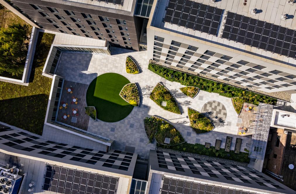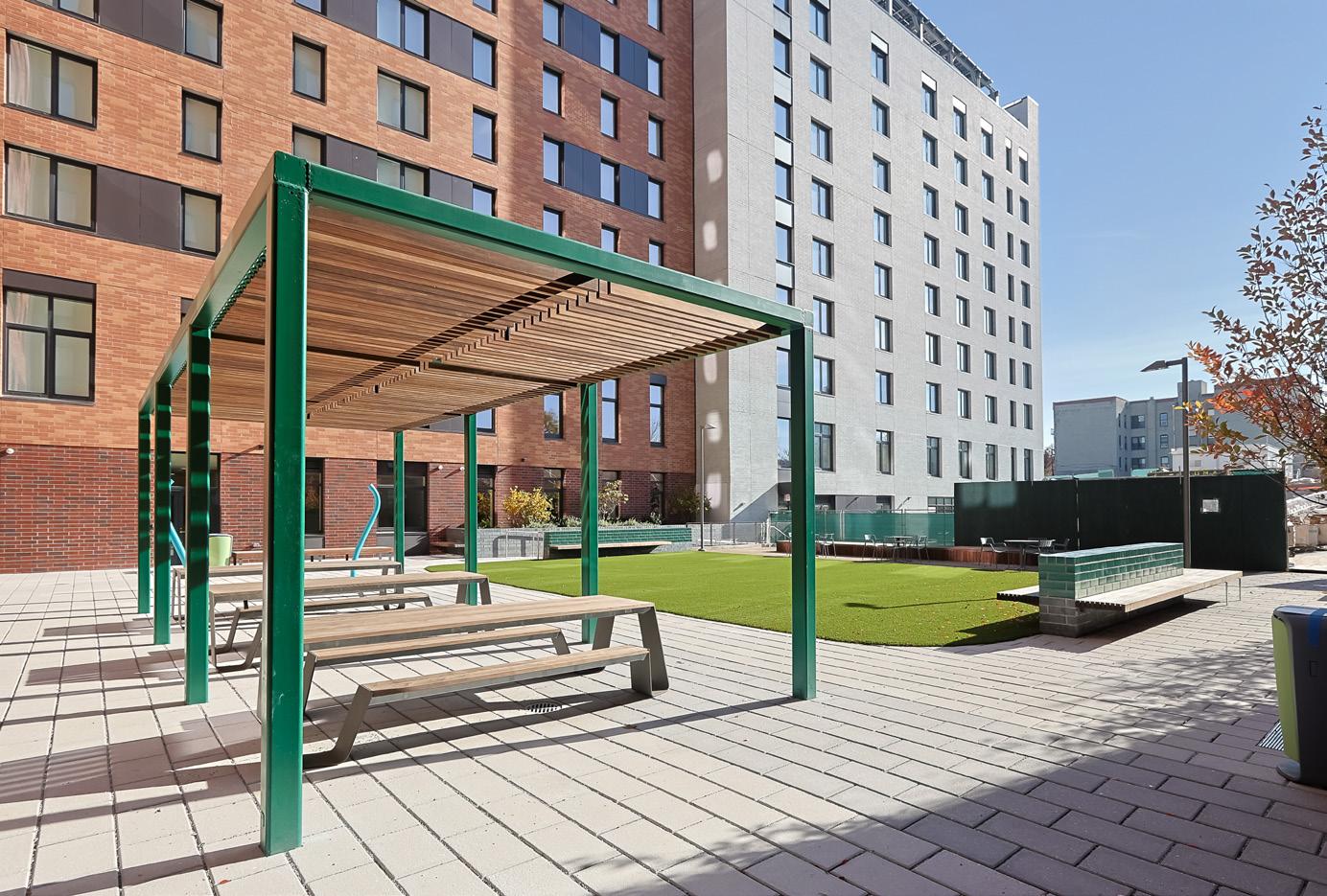 The buildings meet ambitious energy efficiency and sustainability goals, complying with Enterprise Green Communities. Both incorporate a highly insulated thermal envelope, energyefficient VRF heating and cooling systems, ERVs delivering fresh air to all apartments, and large solar PV arrays.