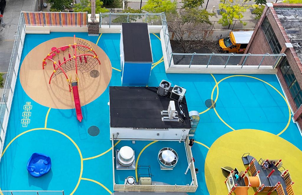 The YM&WHA Rooftop Playground serves as a dynamic perch for recreation for children and an example of the possibilities for intensive use of often ignored spaces in urban environments.