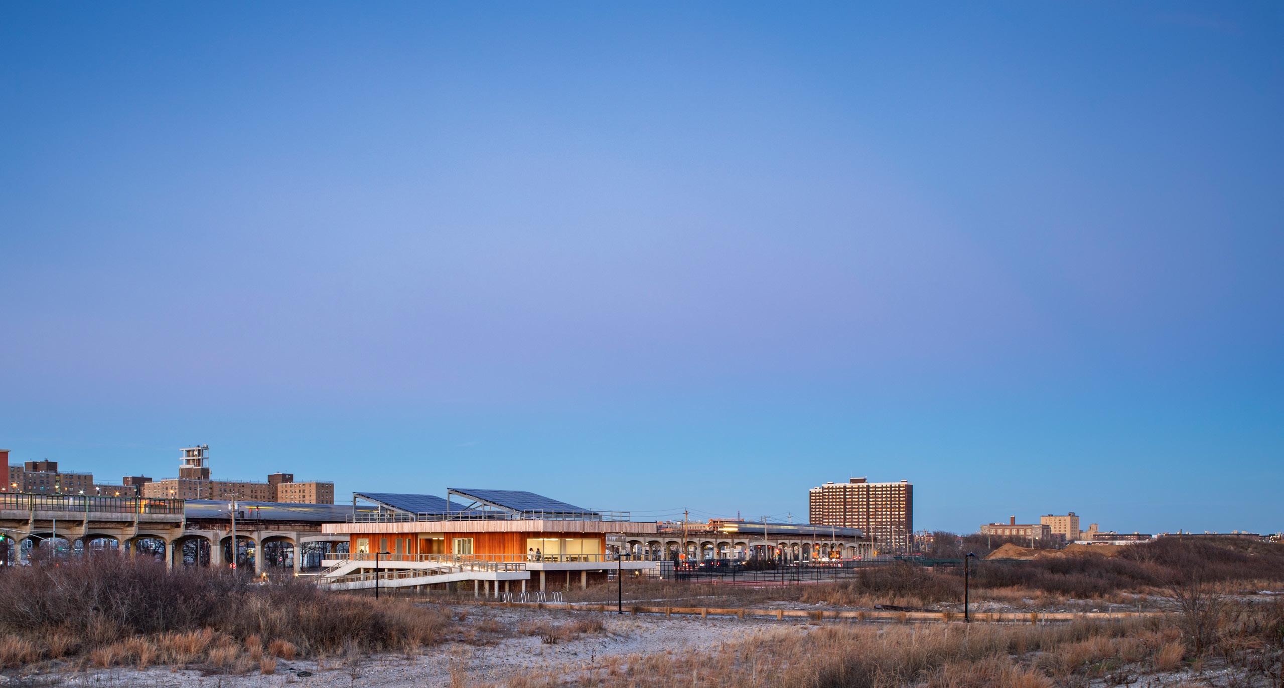 and the local community. Its strategic location adjacent to the Beach 44th Street subway stop in the Rockaways makes it a vital link between public transit, the Arverne East Nature Preserve, and a thriving community garden, serving as a gateway that connects the built and natural environments.