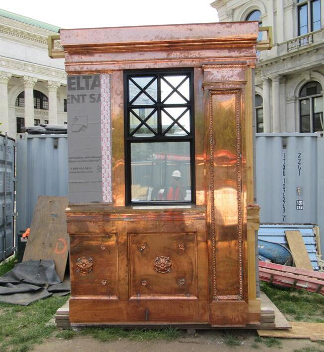 All original copper was removed and replaced, including flat and standing seam roofs, wall cladding, downspouts, and intricate ornate detail work. As a historical restoration project, the copper was replaced to match the original profiles while managing to incorporate thermal insulation improvements. The goal was to replicate the original copper cladding as closely as possible while being consistent with the restoration principles provided by the Department of the Interior Secretary Standards for Preservation.