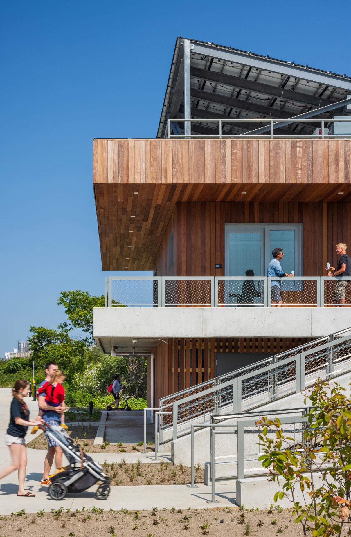 Completed in 2024, the Coastal Conservation Center, formerly known as the Arverne East Community Hub and Nature Preserve House, represents a significant step forward in the integration of ecological stewardship, community engagement, and resilient urban design. Operated by local non-profits, the center provides a dynamic and flexible meeting space for environmental organizations, educational initiatives,