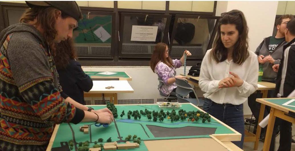 Upper division Architectural Engineering Technology students building a site model for final presentations.