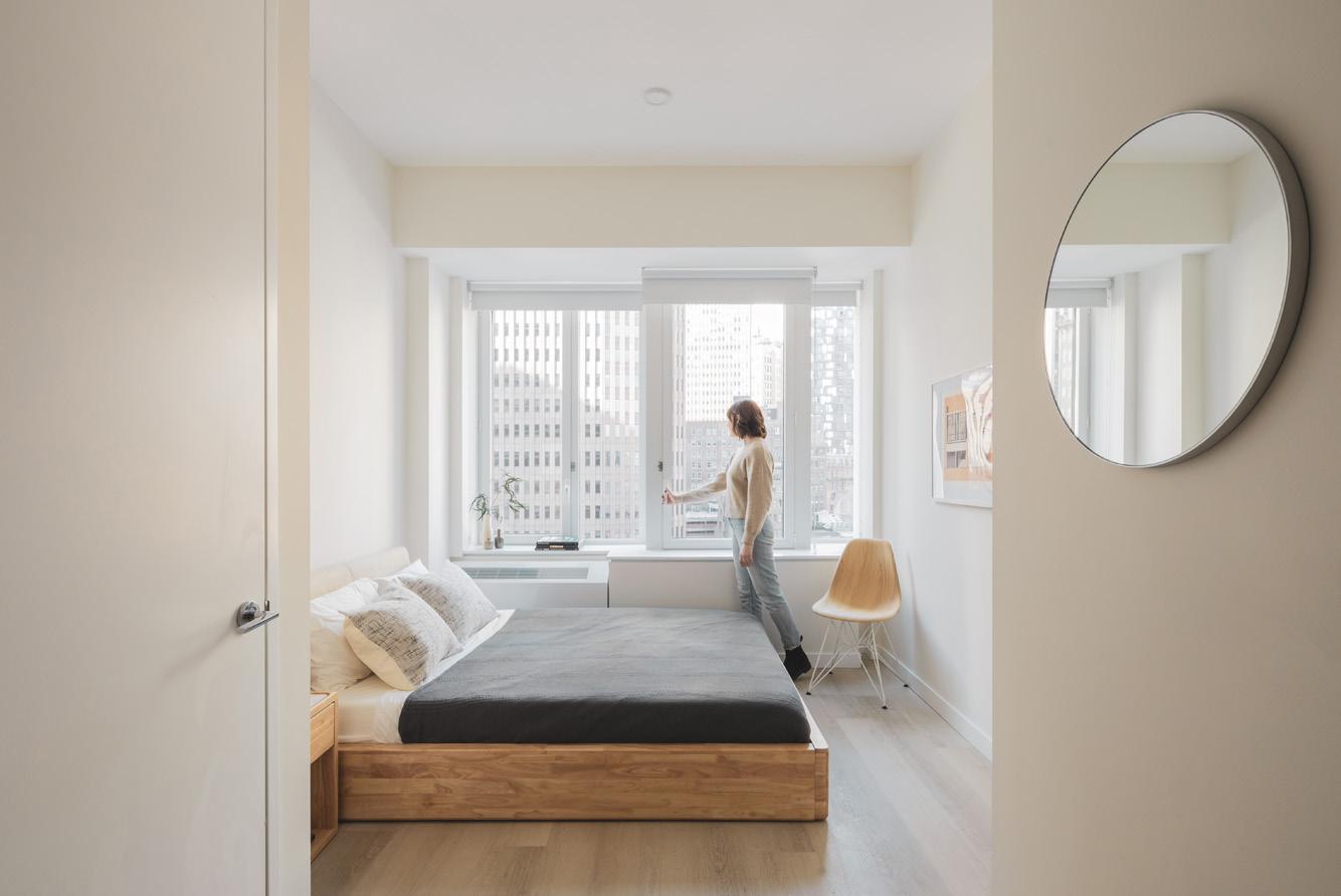 Each of the upper residential floors includes 17 private bedrooms, arranged along four short corridors around a shared core: kitchen, dining, lounge, laundry, and support offices. This promotes a balance of connection and independence.
