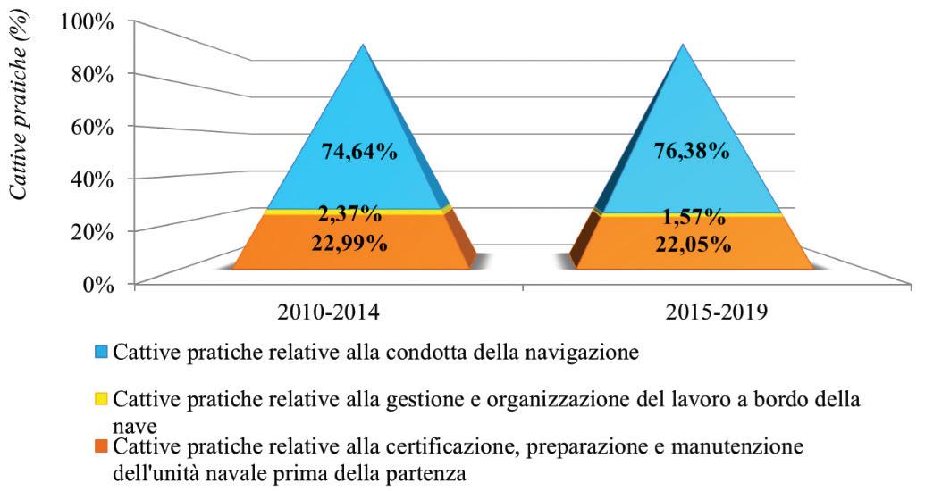 Analisi delle cause dei sinistri marittimi nei due quinquenni 2010-2014 e 2015-2019.