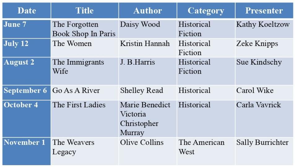 ➢ *July postponed a week due to the 4th of July holiday
