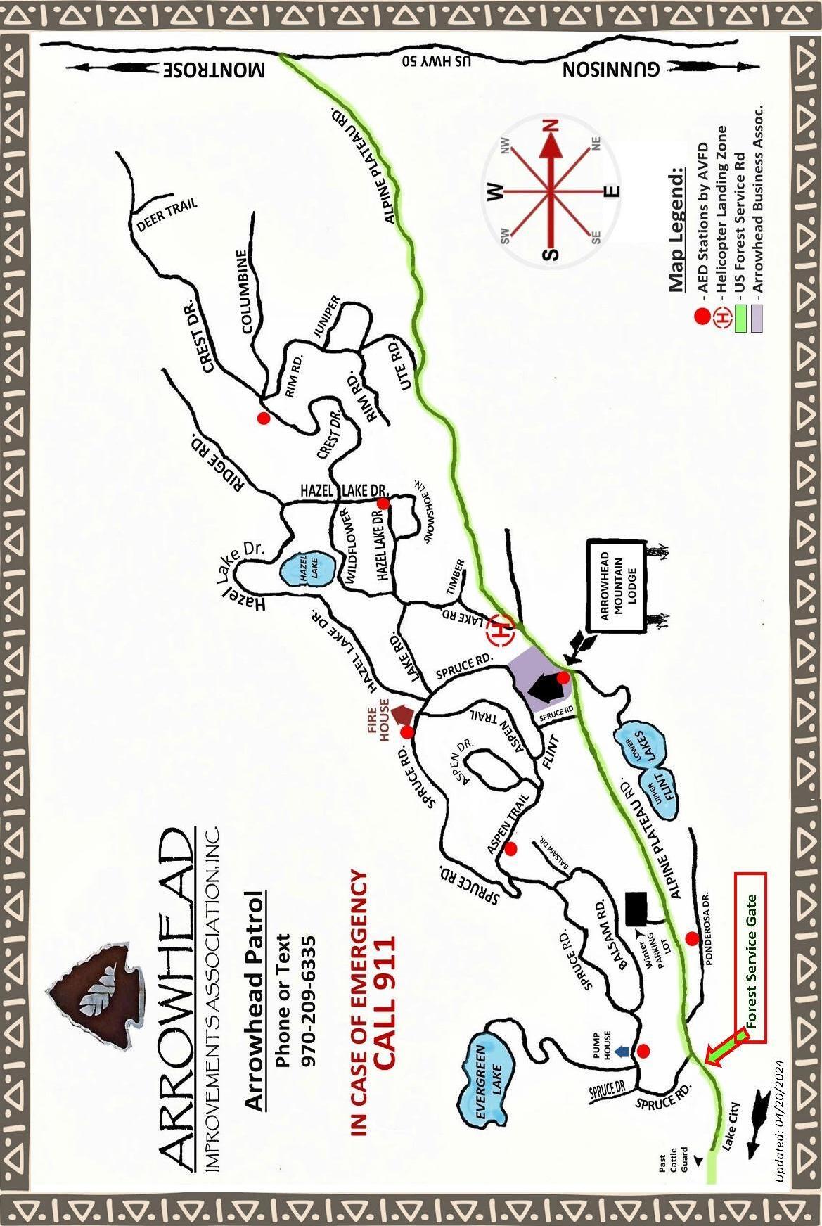 When the Maintenance Crew starts to plow the filing roads, we ask that you please HOLD Off driving the filing roads. *WAIT FOR THE OFFICIAL NOTICE* Owners will receive an AIA Blast Email when the filing roads open! AIA will then post to the website at www.arrowhead1.org and our official AIA Facebook page. Patrol will also remove the Road Closed signs. Have patience so you don’t hinder the equipment moving around the area.