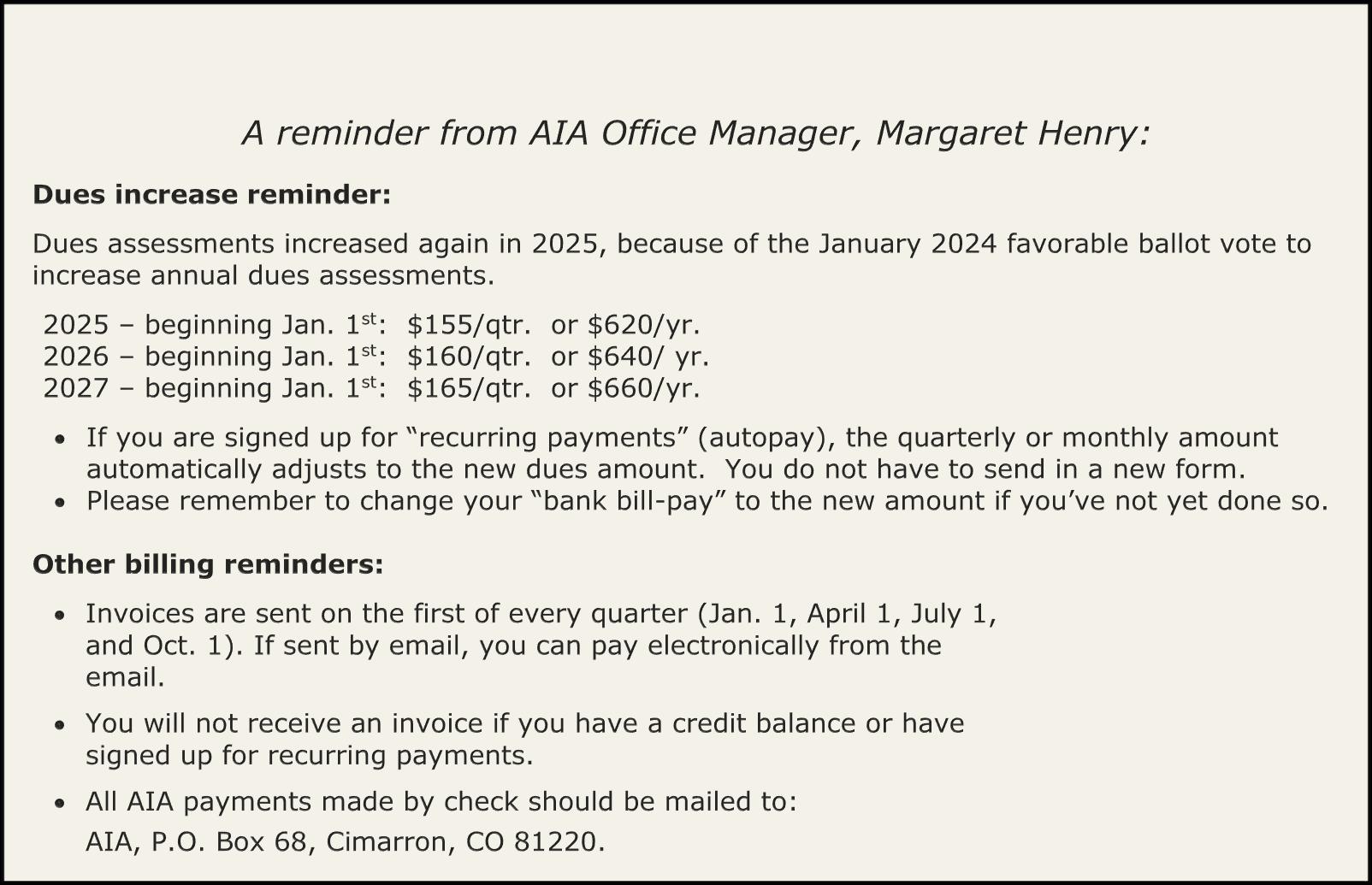 ARROWHEAD IMPROVEMENTS ASSOCIATION, INC. PO Box 68, Cimarron, CO 81220