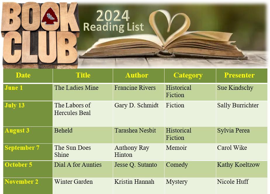 *Julypostponedaweekduetothe4thofJulyholiday NovemberwillbeheldatCampRobber,Montrose-11:30am JanuarythroughMayread,read,readandsharewhatyouwouldlikeustoreadnextyear!!