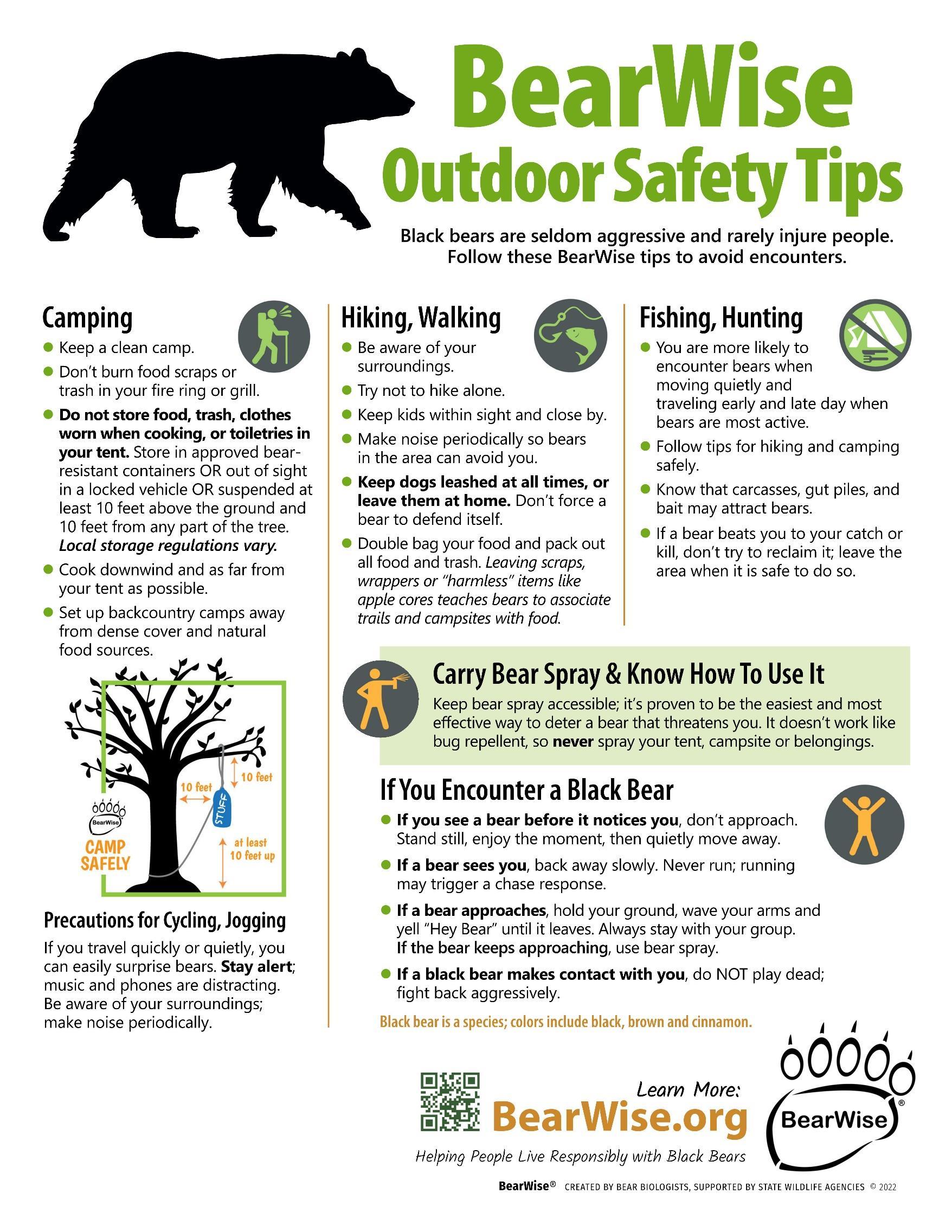 To learn more about bear proofing your home, visit the Colorado Parks & Wildlife website at: https://cpw.state.co.us/learn/Pages/Livingwit hWildlifeBears2.aspx