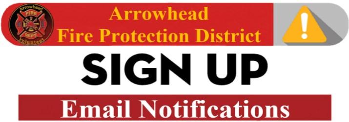 owners and residents receive these critical alerts and information about possible emergencies and evacuations, it is HIGHLY RECOMMENDED that you sign up to the Arrowhead Fire Protection District EMAIL NOTIFICATION SYSTEM.