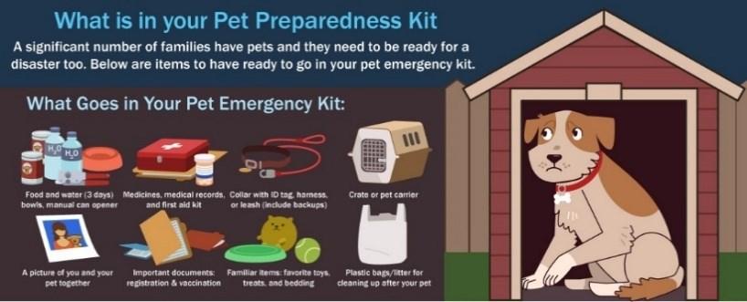 Family pets. Prepare some of their items and put in plastic bag or tote.