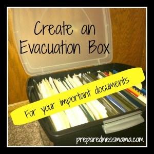 Folder/binder of important documents stored in a plastic/waterproof bag. All of these items are very difficult to replace and extremely important to have on hand. Consider keeping these items stored in one easy to reach location in your home or in a safety deposit box at your bank