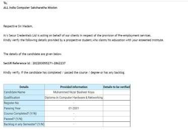 Students may check the validation of certificate via enrollment no. and registration via entering form no. on official site(www.aicsm.com). 4 Fee concession for handicapped students and widows. 5 Job placement facility.