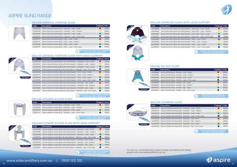 To view our comprehensive range of slings (including pivot slings) please visit www.aidacarelifters.com.au