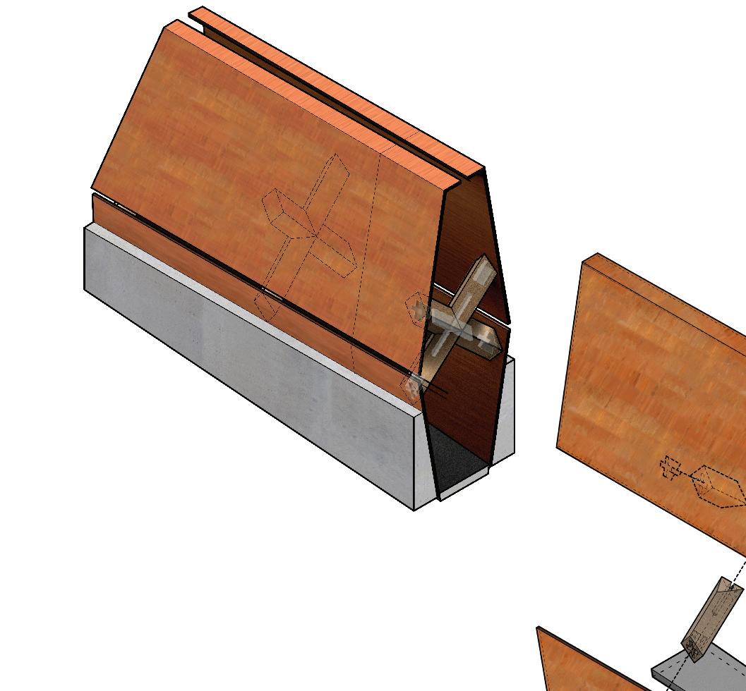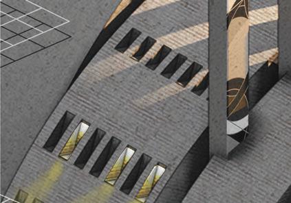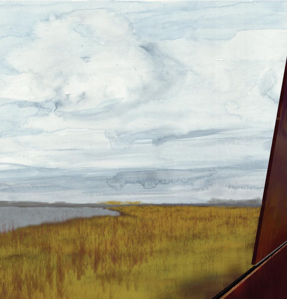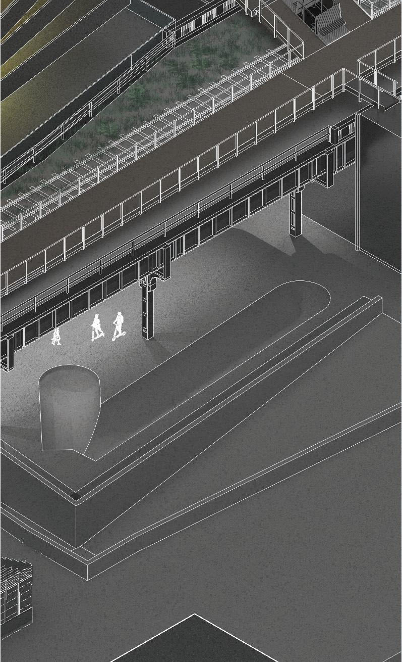 Spatial Pilgrimage is a project that asks how architecture can interact with the rituals of the human experience. More specifically, the project started with the idea of creating a space that reflects what it means to process negative emotions, trauma, and anxiety. This is reflected in its sequence of space. First, the occupant is greeted by darkness and a gentle decline into the narrow passage. With no view of the exit, they pass through the structure beneath the thin slice of light guiding them through. Eventually, the light at the end of the tunnel guides them back to the surface. Inspired by the nearby river, our ship-like structure is made of corten steel to compliment the earthy tones of the Iowa river basin in March.
