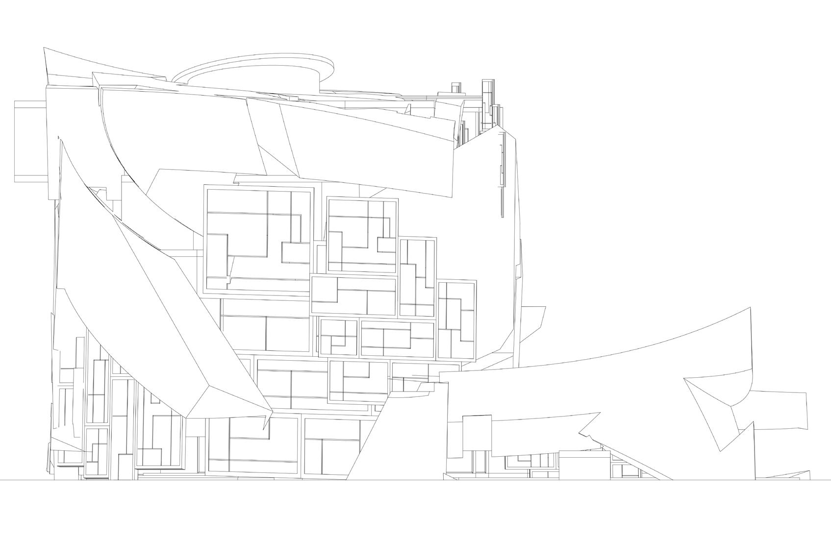 The design places an emphasis on the abstract, monumental concrete “skin” that wraps down the building and into the ground. The monolithic structure is broken up by nested windows systems that were curated through a series of smaller stacked windows creating a web-like look. The project achieved a great level of interconnectivity in the interior spaces through the design process which places an emphasis on designing with section first. The interaction between levels was then enhanced by the Gordon Matta-Clark-inspired circular Boolean running through the center of the building. Program of the building includes recording studios, an outdoor amphitheater, production rooms, rehearsal rooms, changing rooms, and administrative offices.
